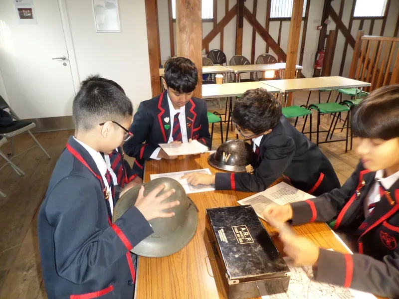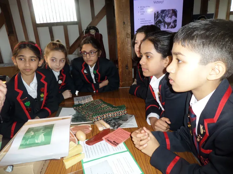 As part of their local history studies, Year 6 visited the Learning Centre at Headstone Manor. They examined genuine artefacts, such as air raid wardens’ hats, first aid boxes and ration books. Each group prepared a presentation to explain what their objects were and why these objects were important. They learned that there is still a hidden underground bunker on the edge of the park and they saw pictures of local houses that had been destroyed by bombs which were directed by the invading forces at Bentley Prior and RAF Northolt.